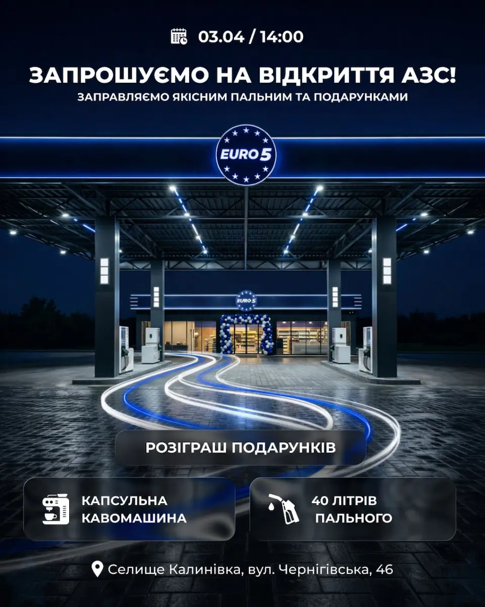 У селищі Калинівка Київської області у квітні розпочне роботу нова автозаправна станція мережі Euro 5, де для клієнтів підготували акційні пропозиції та розіграші подарунків. Про це компанія повідомила на своїй офіційній сторінці у Facebook.