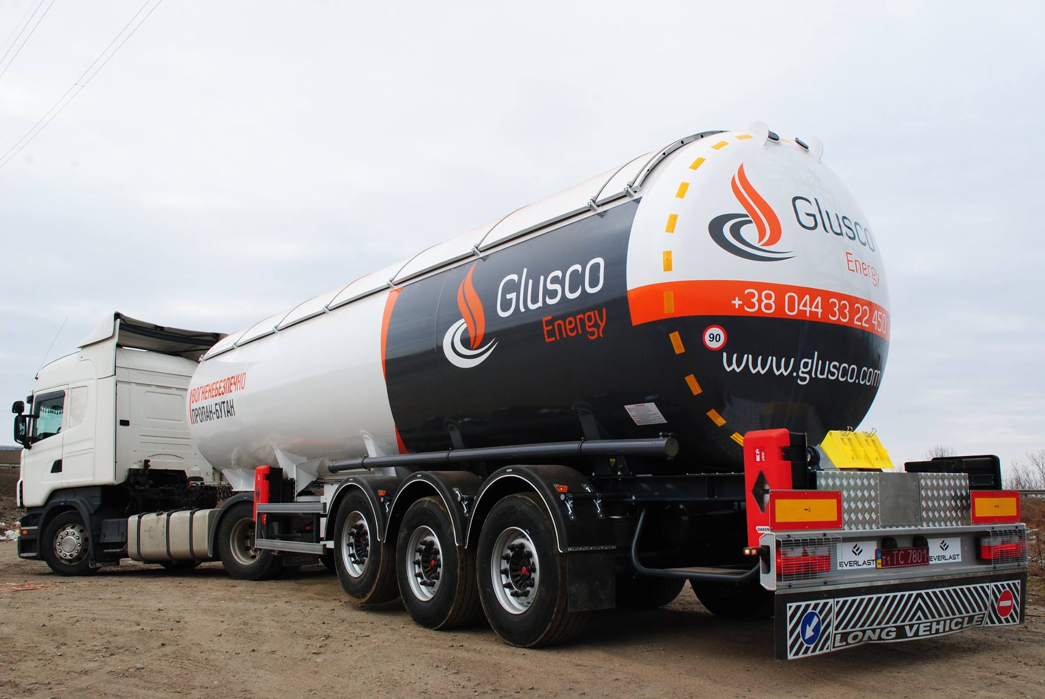 Полуприцеп-цистерна укомплектована расходомером Micro Motion. Общий объем емкости составляет 45 куб., установлены на немецких осях SAS. В «Эверласте» сообщили, что Glusco Energy заказывала еще один газовоз у одесситов в 2017 г.