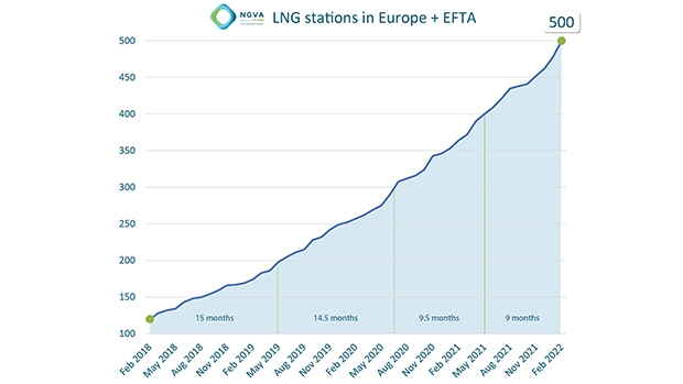 Ассоциация транспортных средств, работающих на природном и биогазе (NGVA Europe), объявила, что Европа достигла отметки в 500 станций LNG в Европе.