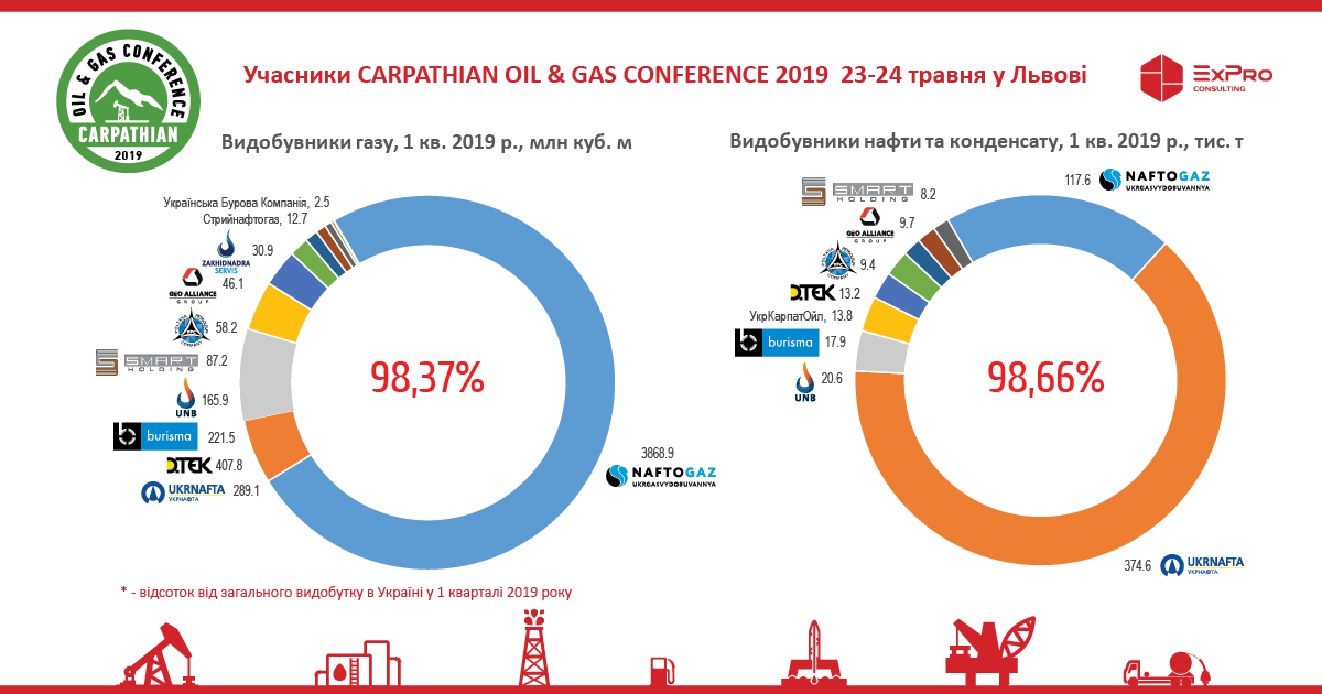 «Сarpathian Oil & Gas Conference поднимает актуальные для отрасли вопросы: получение лицензий, геологическое изучение, бурение и работы на скважинах: ГРП, колтюбинг, снабинг, восстановление скважин, забурка боковых стволов. Для обсуждения и презентации современных технологий перед добывающими компаниями Львов посетят технологичные украинские и зарубежные буровые и сервисные компании. Кроме того, УГД, как крупнейший заказчик услуг в Украине, представит 23 мая планы бурения на ближайший период. Главная цель мероприятия - новые знакомства и получения опыта по технологиям», - заявил директор EXPRO Consulting Геннадий Кобаль.