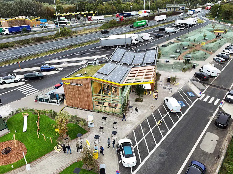 Мережа Fastned відкрила свою найбільшу на сьогодні станцію заряджання електромобілів з зоною відпочинку: вона знаходиться на автостраді E17 між Гентом та Антверпеном в Бельгії.
