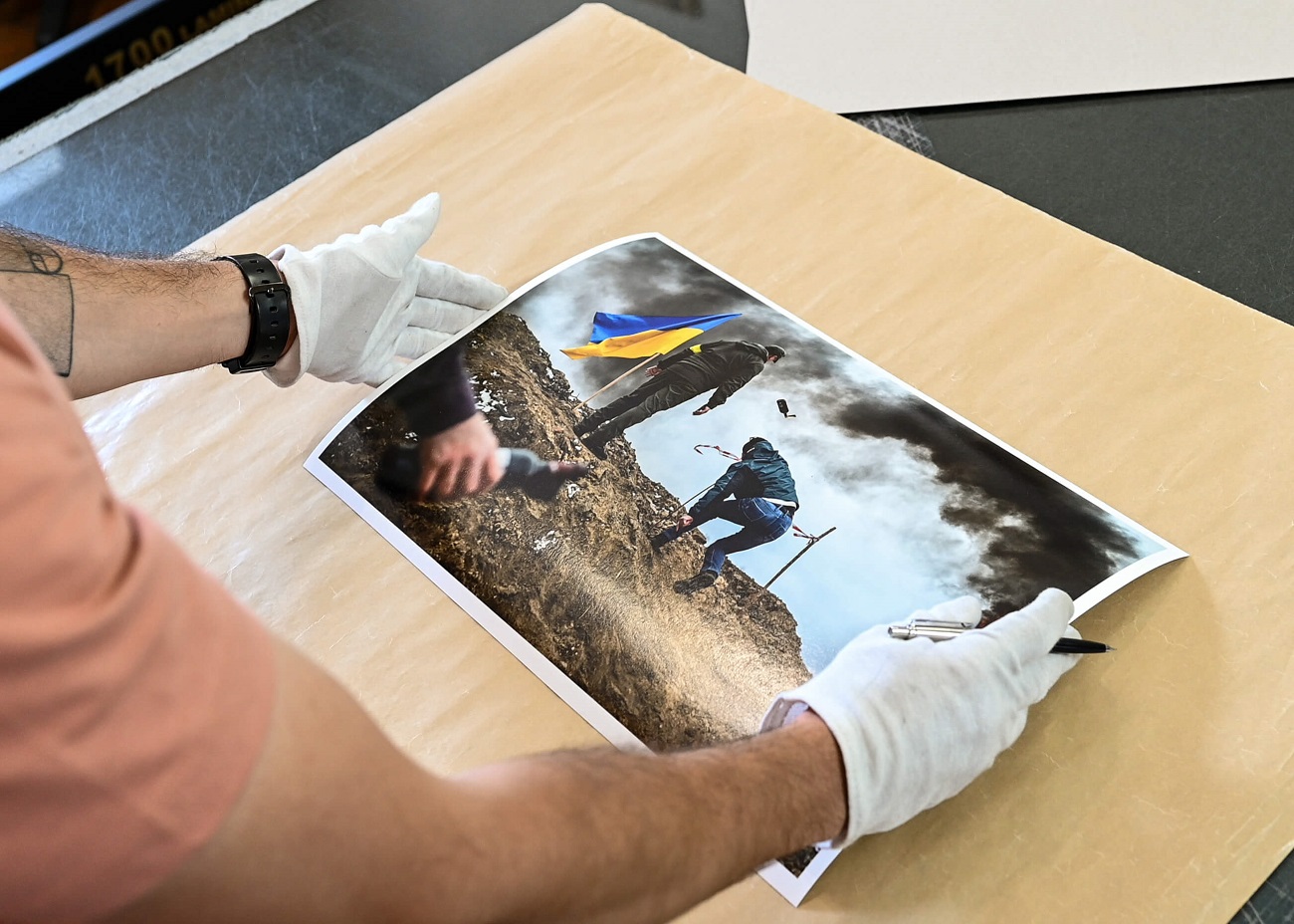 «Тоді все місто готувалося до російського вторгнення, до оточення, до відрізання від Києва. Дуже багато чуток ходило, але люди не забарилися, вони зібралися на одному із покинутих заводів міста, принесли з собою коктейлі Молотова або Бандера-коктейлі (як вони їх називали) для того, щоб навчитися кидати пляшки із запалювальною сумішшю у танки. На тому заводі зібралися близько 100 чоловік – це були жінки, дорослі чоловіки і навіть діти», - прокоментував сюжет фото В'ячеслав Ратинський під час відео-презентації лоту.