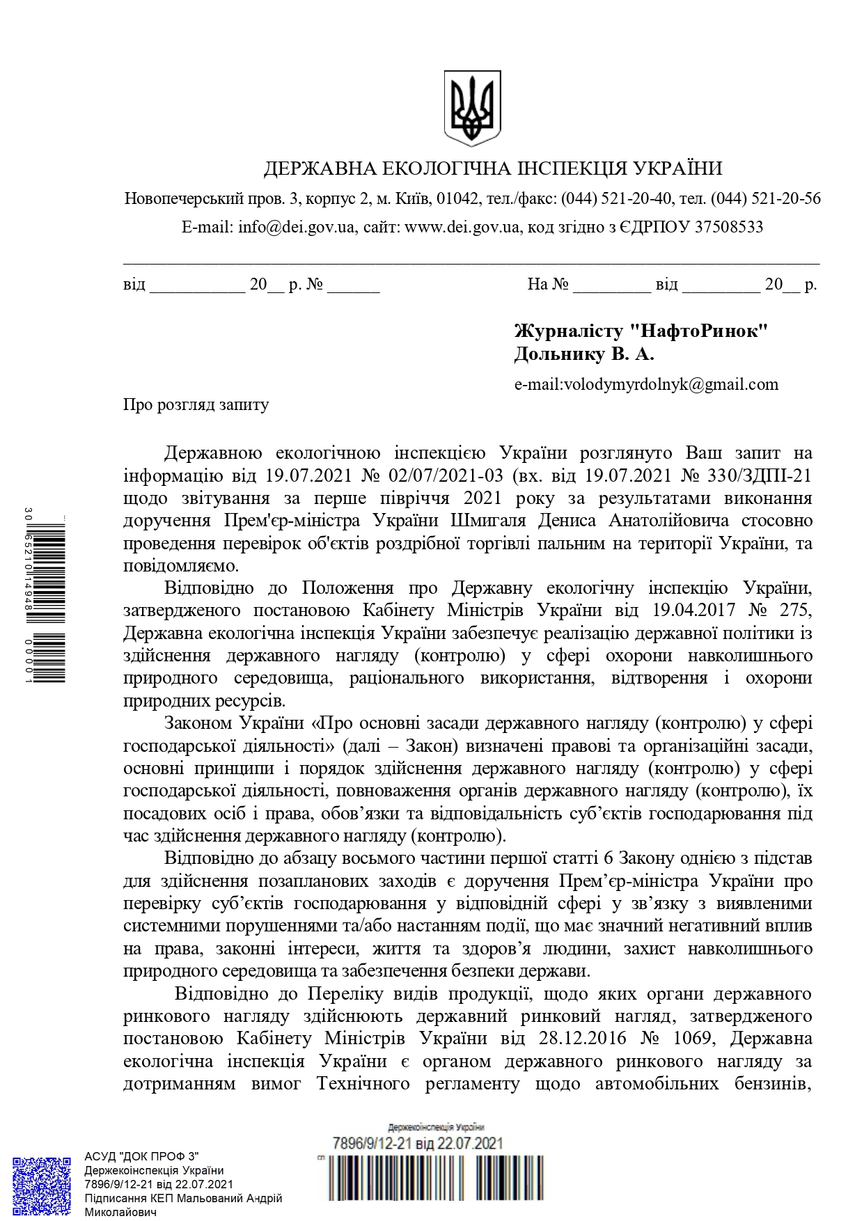 За I полугодие 2021 на АЗС (АГЗС) Украины территориальными и межрегиональными территориальными органами Госэкоинспекции проведено 828 мероприятий государственного надзора (контроля) за соблюдением требований природоохранного законодательства, 582 мероприятия государственного рыночного надзора за соблюдением требований Технического регламента. Об этом сообщили в ГЭИ в ответ на запрос НефтеРынка.