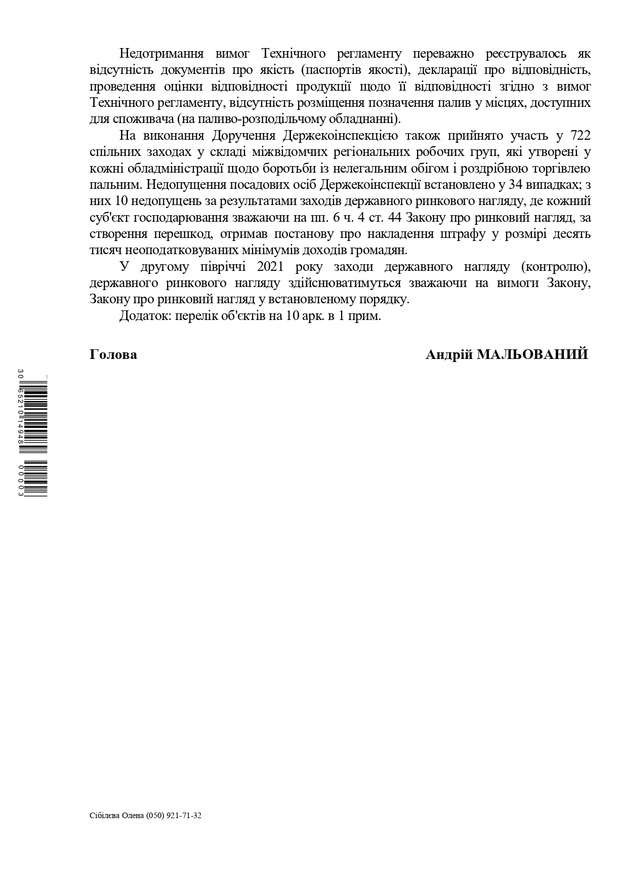 За нарушение требований природоохранного законодательства составлено 932 административных протокола и наложено административных штрафных санкций на общую сумму 206 609 грн. По несоблюдению требований Технического регламента принято 998 решений о принятии ограничительных (корректирующих) мер по устранению формальной несоответствия/ограничения предоставления продукции на рынке, и применены административно-хозяйственных санкции на общую сумму – 9 622 680 грн.