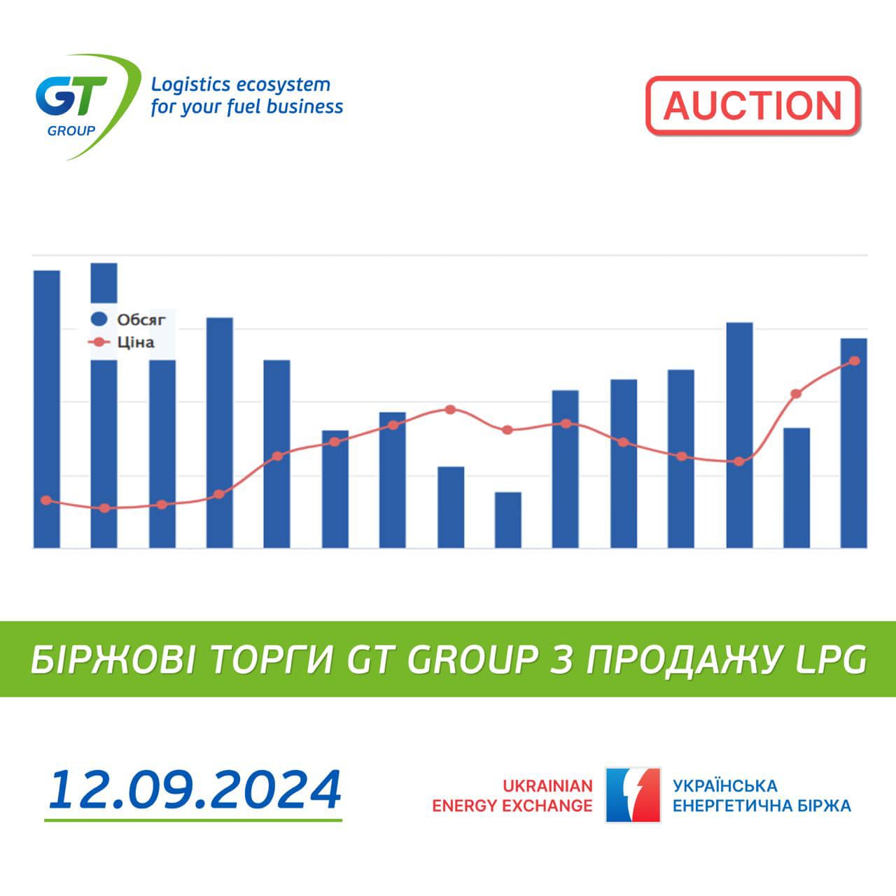 GT GROUP 12 вересня проведе черговий аукціони з продажу скрапленого газу на майданчику Української енергетичної біржі (УЕБ). Про це компанія повідомила на своїй сторінці у FaceBook.