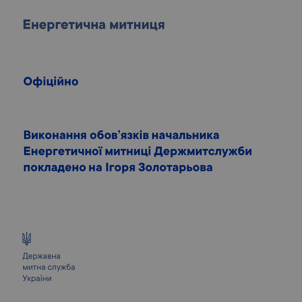 Игорь Золотарев назначен и.о начальника Энергетической таможни. Об этом сообщили в ведомстве.