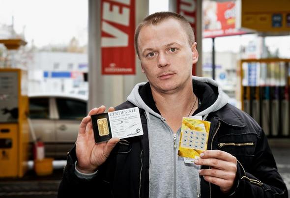 В рамках акции «КЛОндайк подарков», столичная сеть АЗС «КЛО» разыграла первый золотой слиток. Его обладателем стал постоянный клиент сети, дальнобойщик Олег. Для того чтобы принять участие в проходящей с 01.10.2012 по 31.01.2013 акции, необходимо совершить покупку топлива за наличный расчет (включая расчет платежными банковскими картами) 25 литров топлива. Автовладельцу предоставляется карточка участника акции (при покупке 50 литров топлива – 2 карточки, 75 литров – 3 карточки). Среди призов: сертификаты на 50 и 1000 гривен, 25 литров топлива, плитка шоколада ручной работы, а также главный приз пятидесятиграммовый золотой слиток. -