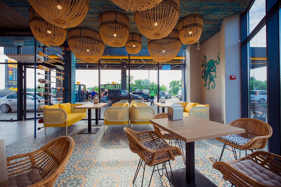 “Ми відкрили для тебе новий тематичний АЗК біля Київського моря, яке і надихнуло нас на дизайн. Дошки для серфінгу, неонові написи, морські хвилі на стінах та стелажі у вигляді каяків, створюють атмосферу яхт-марини чи пляжного бару у курортному місці”, – йдеться у повідомленні компанії.