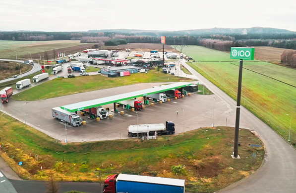 Компанія збудувала вже дві АЗС під брендом Е100, одна знаходиться у Годзешуві при вантажному комплексі обслуговування транспорту Port Godzieszów неподалік переходу Згожелець на Польсько-Німецькому кордоні по трасі Е-40 , а друга - АЗС в Швєцко не далеко від кордону Польщі з Німеччиною по трасі Е30.