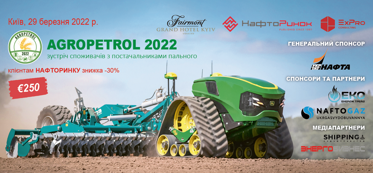 Набирает актуальности встреча конечных потребителей нефтепродуктов и природного газа состоится 29 марта в Киеве в пятизвездночном отеле Fairmont Grand Hotel Kyiv в рамках конференции AGROPETROL 2022.