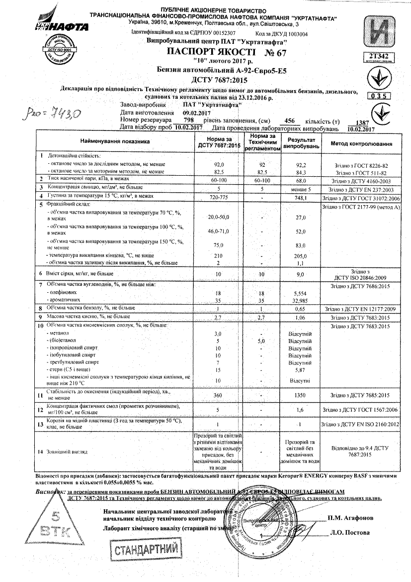 «Укртатнафта» начала выпуск бензинов, соответствующих стандарту Евро-5. Этот производственный проект удалось реализовать с опережением ранее заявленных сроков благодаря диверсификации поставок нефтяного сырья - а именно, поставкам на предприятие азербайджанской нефти. Итак, «Укртатнафта» досрочно предложила отечественном топливном рынке бензины высшего экологического класса.