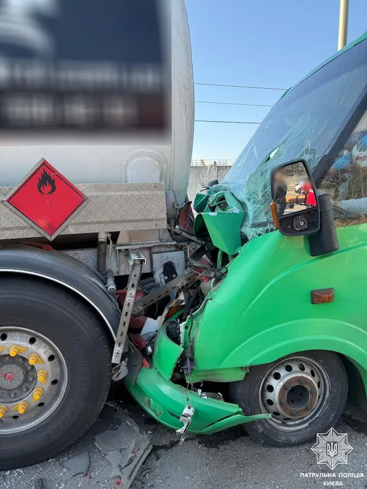 Як видно з опублікованого відео, на місці інциденту було щонайменше п’ять карет швидкої допомоги. Передня частина маршрутки зазнала значних пошкоджень — кузов опинився під задніми колесами бензовоза.