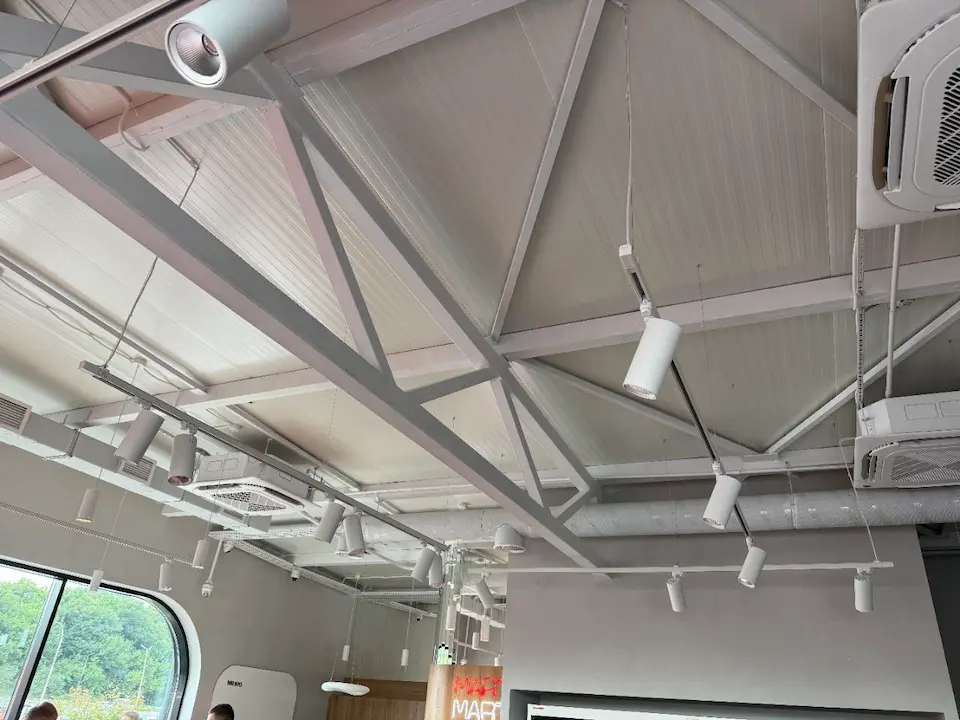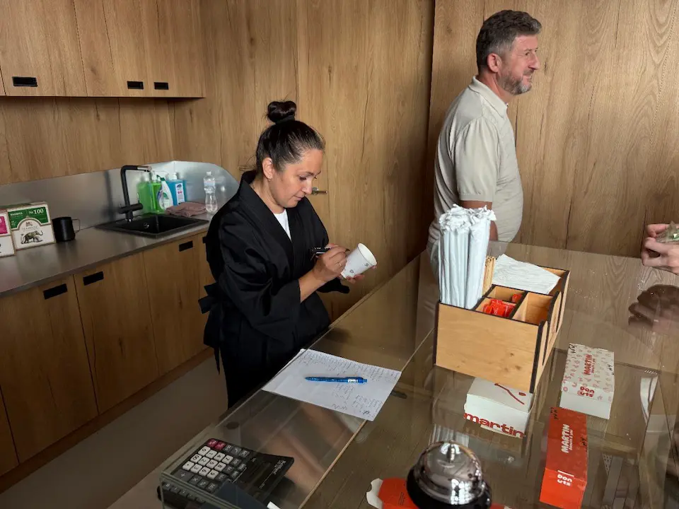 Магазин побудовано невеликого формату – 130 м2, має зону кафе з двома кавовими точками – автомат Franke A 800 та ріжковий Astoria. Кавове обладнання, чаї та каву постачає компанія Bacara з Чернівців. В кафе запропонують їжу у форматі стріт-фуд: перші страви (борщ та бульйон у стаканчиках), хот-доги Mr.Grill, нагетси та картоплю фрі. Фішкою кафе в Martin визначили пончики власного виробництва. Як у популярних кав’ярнях США та Європи, зокрема Starbucks, при замовлені кави в бариста на ріжковій кавовій машині підписують стаканчик ім’ям клієнта. Кухня АЗС обладнана сучасним устаткуванням – Food Equip, холодильне обладнання в магазині – Modern Expo.