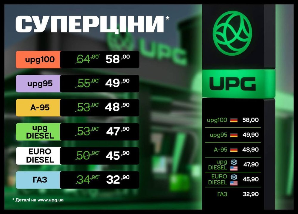 UPG пропонує пальне за ціною, зниженою на 6 грн/л. Однак пропозиція діятиме на день менше – з середи по п’ятницю. «БРСМ-Нафта» надає знижку 5 грн/л на бензин, 4 грн/л на ДП та 1 грн/л на газ.