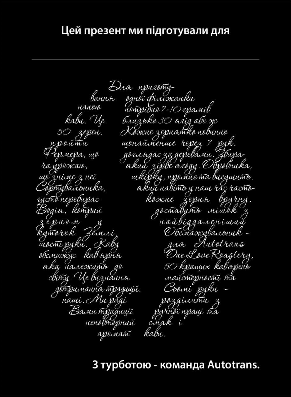 «Открытка рассказывает историю кофе через руки, проходящие зерно. Последние, седьмые руки, это наша компания, и мы рады разделить традиции ручного труда, кофейного искусства с нашими друзьями», – Сергей Нагорный, pr-специалист сети АЗК Autotrans.