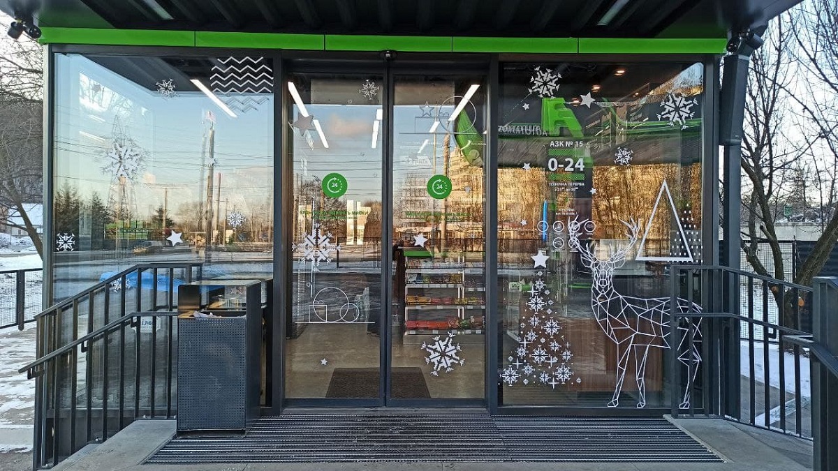В рамках ребрендинга Autotrans выдерживает строгость линий и минимализм. В частности, в новогоднем декоре. В сети АЗК были установлены стильные елки в стиле лофт из металла. Их изготовила местная региональная компания. Помещение магазина украсили росписью.