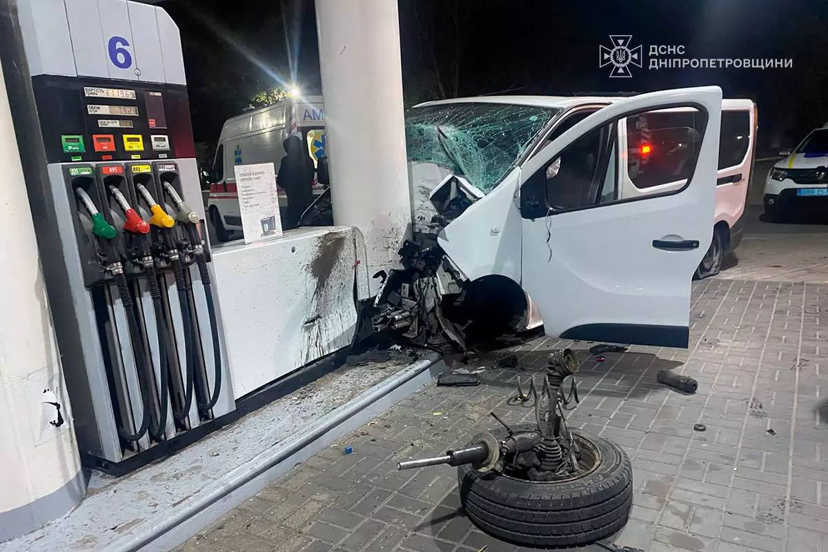 В суботу, 2 листопада, мінівен врізався в АЗС в Кам’янському на Дніпропетровщині. Про це повідомило Головне управління ДСНС України в Дніпропетровській області.