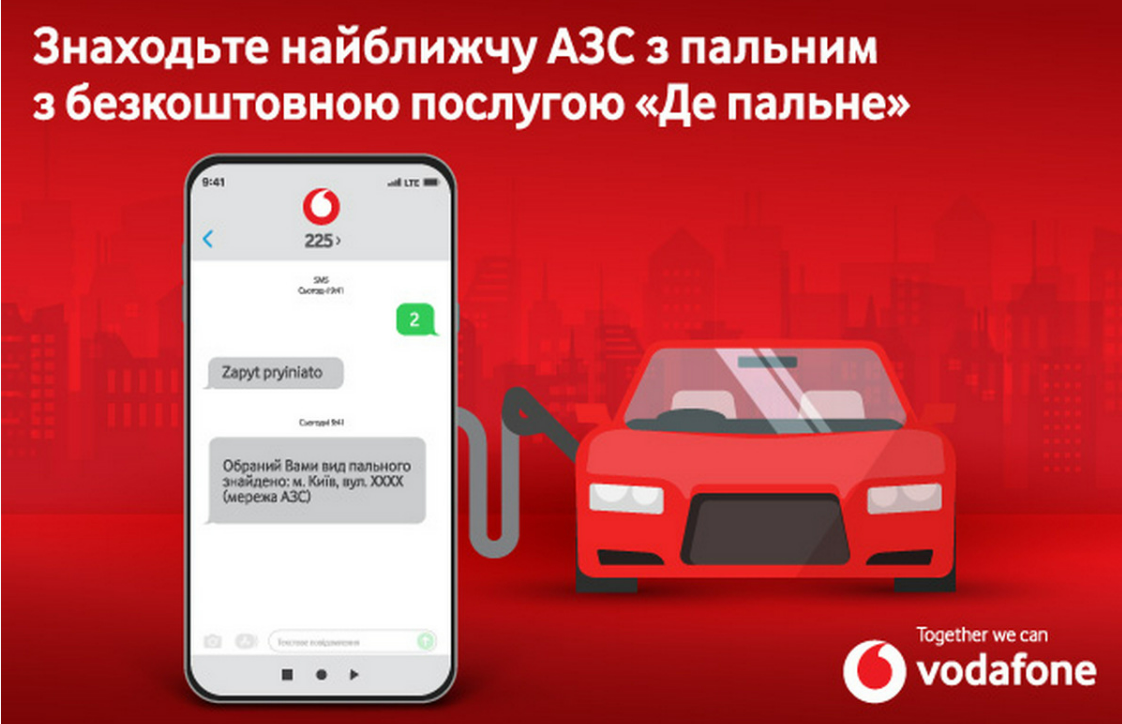 Vodafone знайде найближчу до клієнта/клієнтки заправку з потрібним видом пального та повідомить про наявність. Користувачеві сервісу надійде SMS «Вибраний Вами вид пального знайдено» та адресу АЗС.