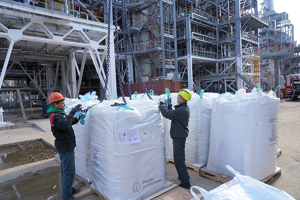 «Подготовка к пусковым операциям началась на реакторном блоке комбинированной установки гидрокрекинга производства по переработке тяжёлых нефтяных остатков. На днях на этом объекте была осуществлена загрузка катализатора H-Oil в бункеры временного хранения D-311 и D-312 реакторов секции 300. Эта непростая операция была проведена менее чем за неделю силами технологического персонала установки с участием экипажа крана GROVE цеха №14 – транспортного и представителей подрядной организации. Работы велись на высоте свыше 40 м», - говорится в сообщении.
