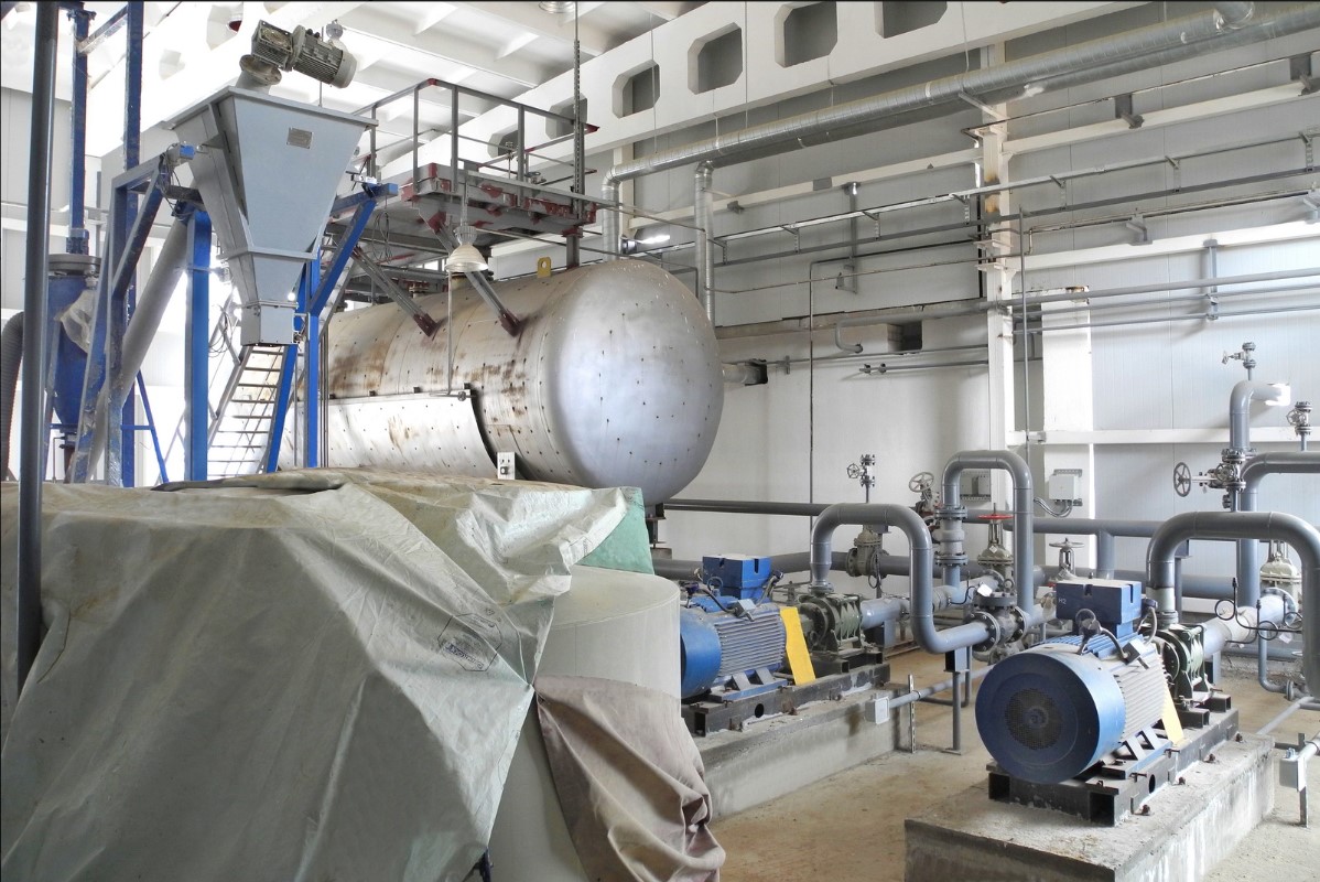 Он состоит из нескольких блоков: станции растаривания биг-бегов («Х1»), станции скоростного солерастворения («Х2»), ёмкости хранения концентрированного раствора («Е-5») объёмом 50 м3, насосов Н-1, Н-2 и резервуара («РВС-128») объёмом 500 м3.