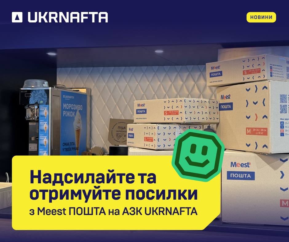 Щоб відправити посилку, треба створити відправлення у застосунку Meest Пошта і оплатити його онлайн. Потім запаковану посилку можна передати касиру на АЗК Ukrnafta.
