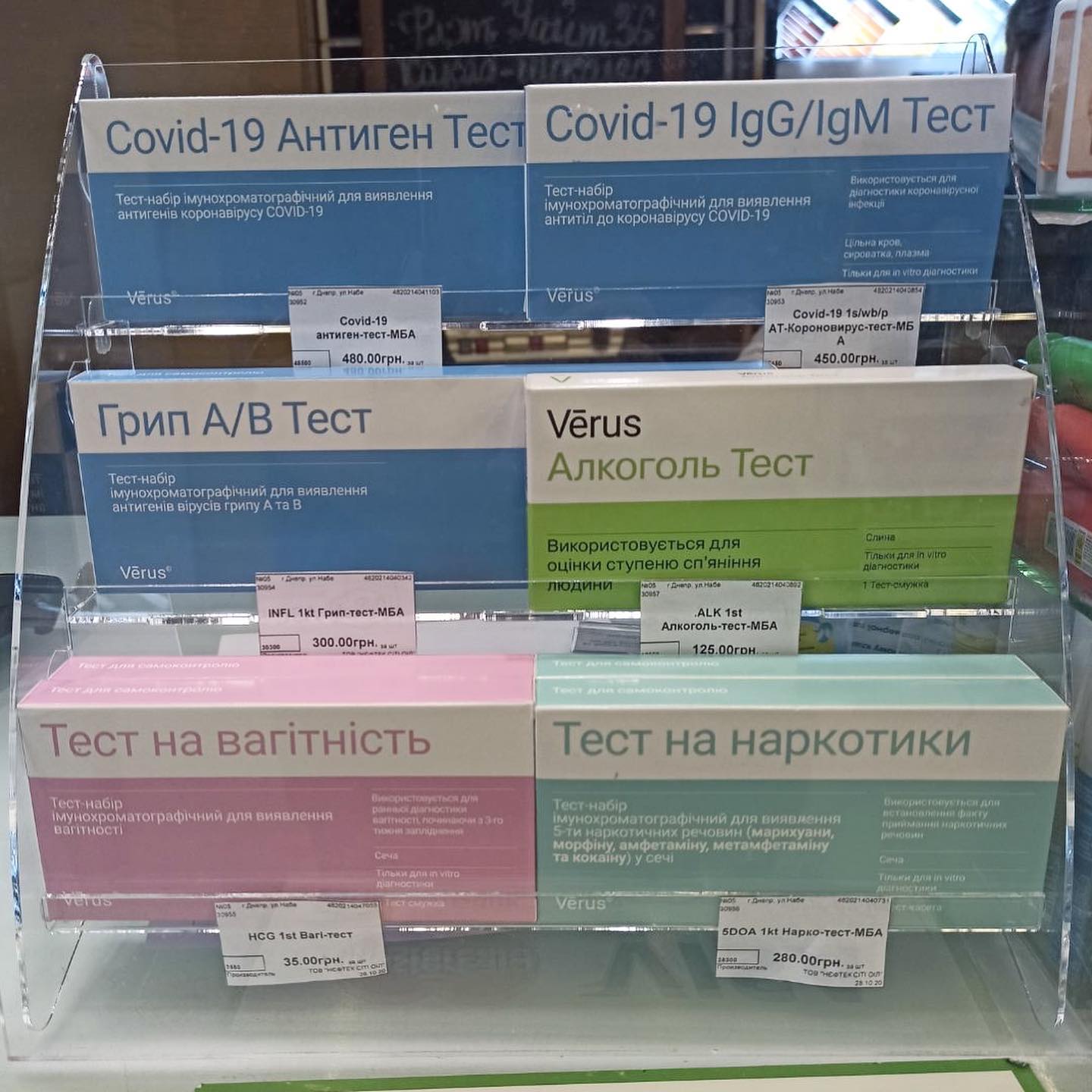 1) Тест-набор Ig / G - Ig / M иммунохроматографический для выявления антител к коронавируса COVID-19 предназначен для визуального (качественного) быстрого выявления антител классов G и M (IgG и IgM) от коронавируса COVID-19 (NCV, 2019-nCoV, SARS-CoV-2), которой является возбудителем атипичной пневмонии в сыворотке, плазме или цельной крови человека методом иммунохроматографического анализа. Стоимость - 450 грн.