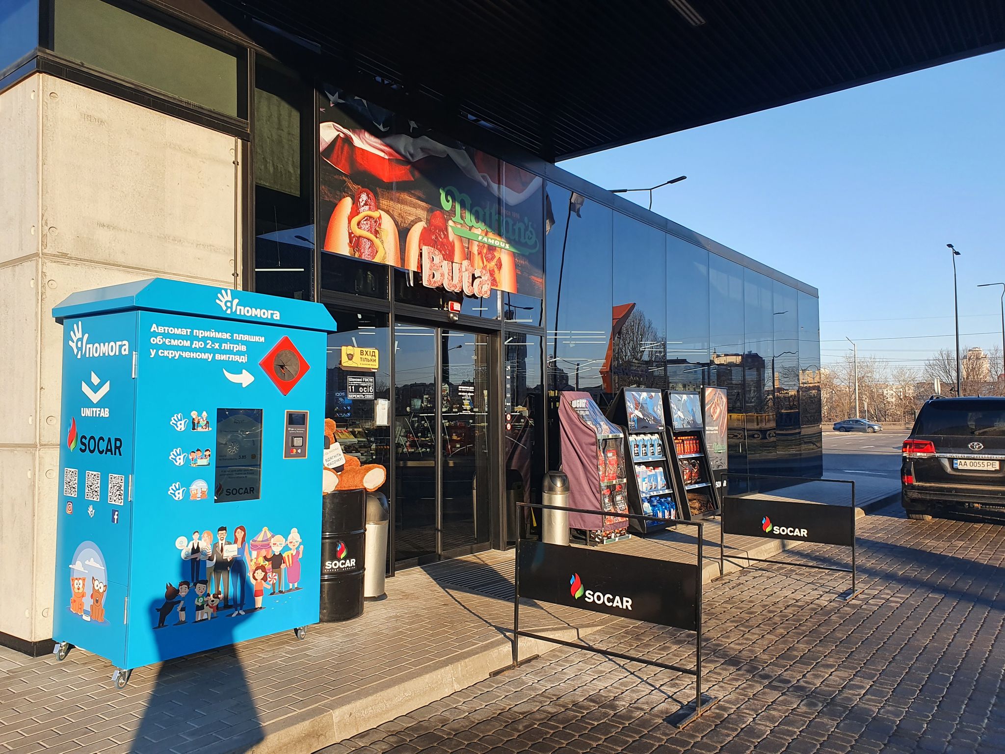 Япомогабокс — первый в Украине и во всем мире инновационный автомат, который превращает вторичное сырье в благотворительность! Новый автомат разместили на АЗК SOCAR, что в Киеве, на улице Степана Бандеры, 36. Напомним, это уже второй Япомогабокс, установленный на территории сети (пилотный проект был запущен на АЗК SOCAR, что на Протасовом Яру, 15).