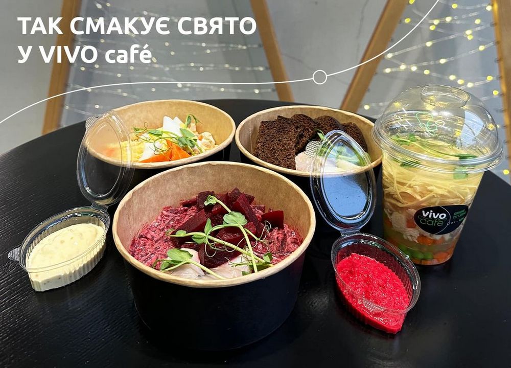 «Курячий холодець з міцним, як козацька вдача, хроном. Форшмак з рубленого оселедця із хрумкими грінками з темного хліба. Незмінна класика у царстві салатів «Шуба» та «Олів’є». Уся ця смакота - новинки сезонного меню у VIVO café! Маленький спойлер. Наші кухарі вдосконалили рецепти культових страв, додавши до них особливі інгредієнти», – повідомили в компанії.