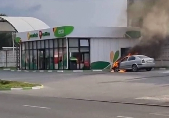 В Мелитополе на автозаправочной станции ECO на улице Воинов-интернационалистов загорелся автомобиль “Шкода”.