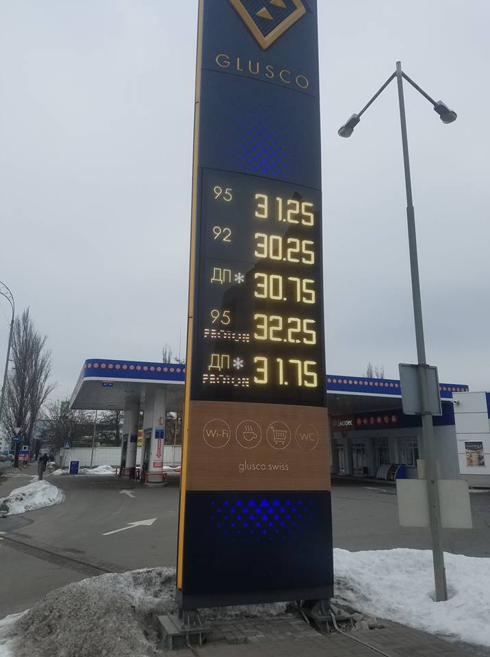 В сети Glusco цены снизились до: А-92 – 30,25 грн/л, А-95 – 31,25 грн/л, А-95 Премиум – 32,25 грн/л, ДТ – 30,75 грн/л, и ДТ Премиум – 31,75 грн/л.