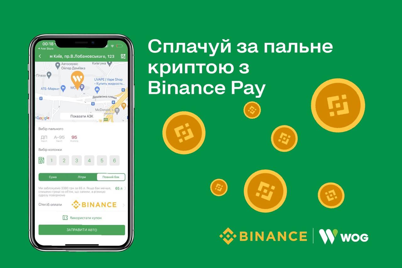 Мережа АЗК WOG стала партнером блокчейн-екосистеми Binance та запустила можливість оплати криптовалютою за пальне за допомогою Binance Pay, повідомляє компанія.