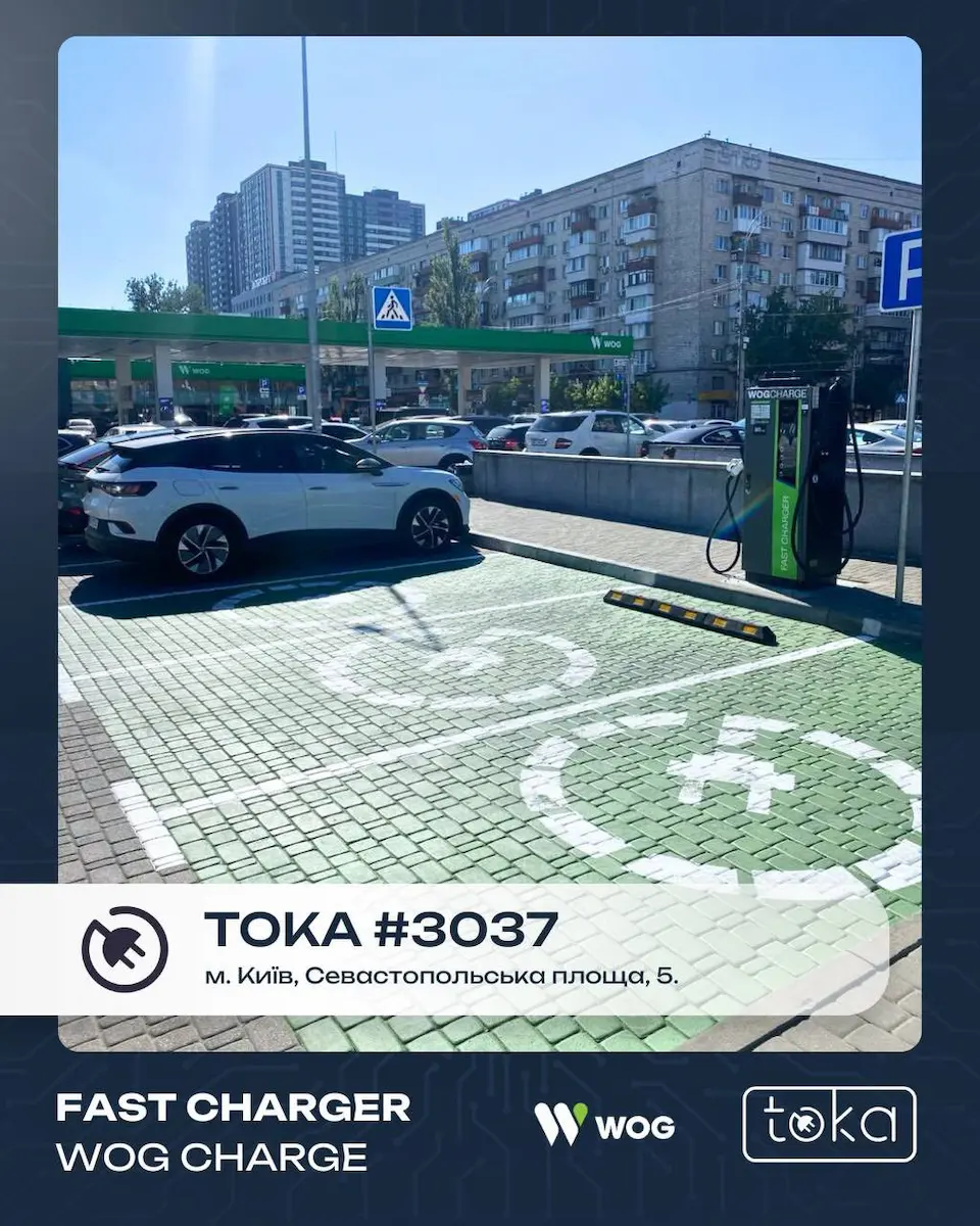 TOKA та WOG — давні партнери, а зарядні станції від цієї компанії регулярно з'являються на заправних комплексах WOG. Зокрема, нещодавно нова зарядка відкрилася на АЗС WOG за адресою: м. Київ просп. Берестейський, 11Б.