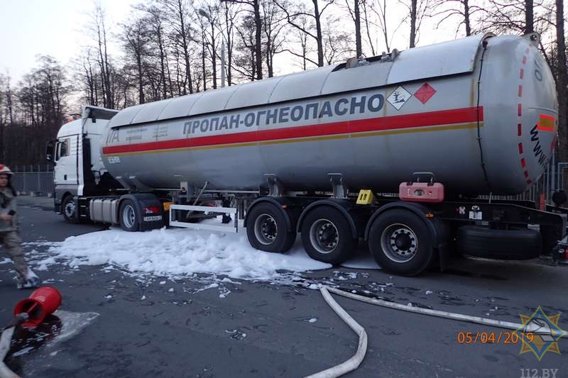 Когда к месту вызова прибыли спасатели, было установлено, что на стоянке пункта пропуска стоит грузовой автомобиль с цистерной-полуприцепом, из патрубка которого выходит пропан-бутан. Водитель следовал на пункт пересечения границы и при остановке почувствовал запах газа.
