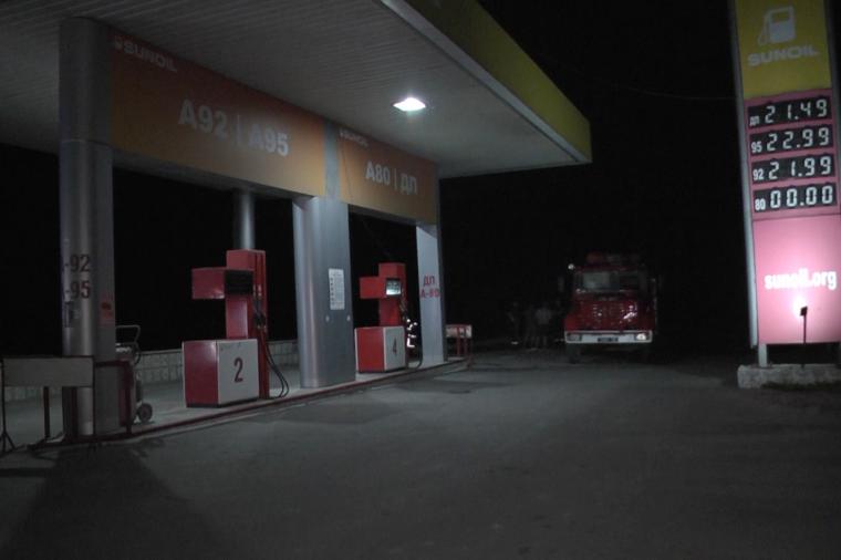 По прибытии к месту вызова было установлено, что произошло возгорание во время слива из автоцистерны нефтепродуктов, существовала угроза опрокидывания огня на подземные резервуары с горючим. До прибытия пожарных водитель успел отогнать автоцистерну от места пожара и вместе с персоналом АЗС приступил к тушению огня первичными средствами пожаротушения.
