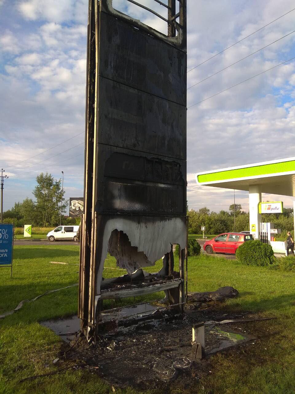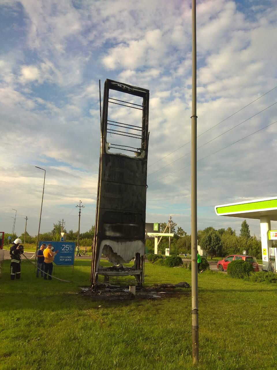 Уже через 2 минуты на место происшествия прибыли спасатели. Оказалось, что загорелась светодиодная стела. Пожарные оперативно локализовали горение и ликвидировали пожар. В результате пожара огнем была уничтожена стела АЗС.
