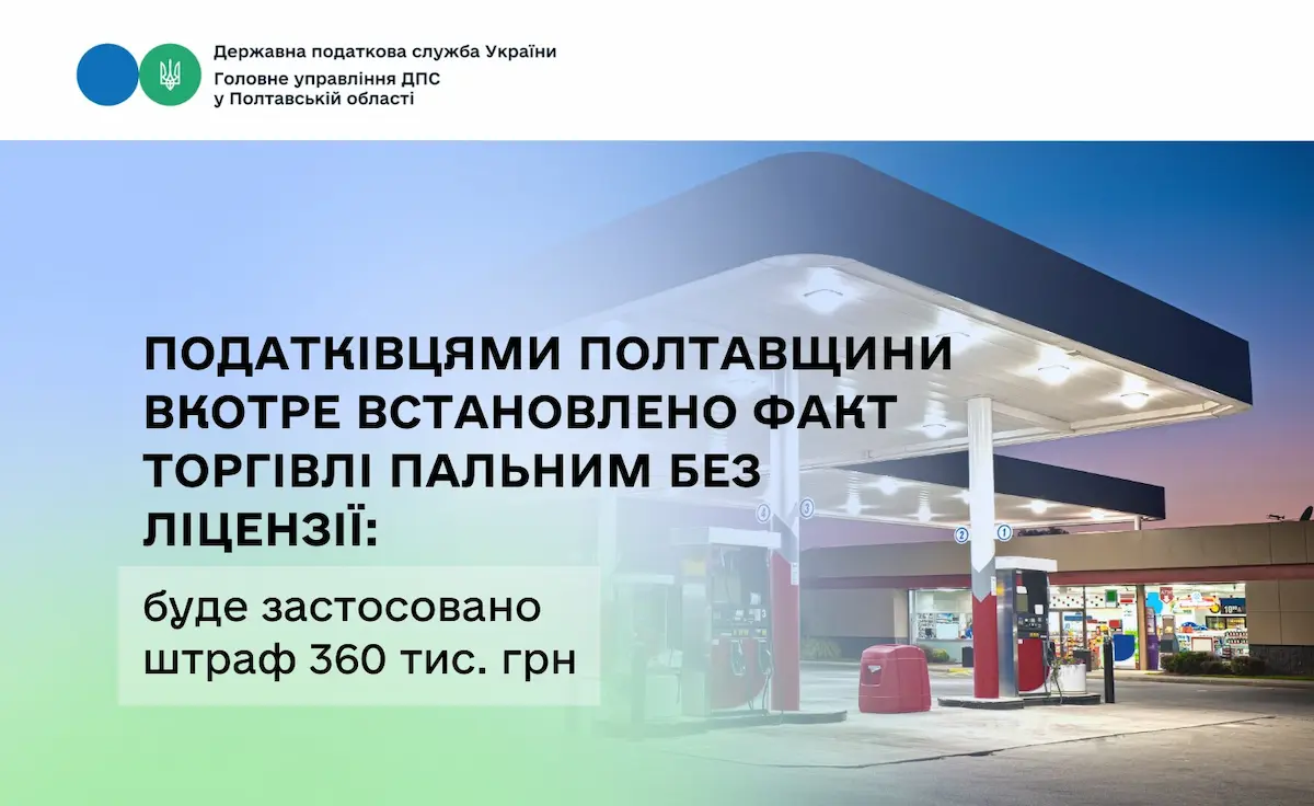 Податківці Полтавської області зафіксували факт роздрібної торгівлі пальним без відповідної ліцензії. Про це повідомило Головне управління ДПС у Полтавській області.
