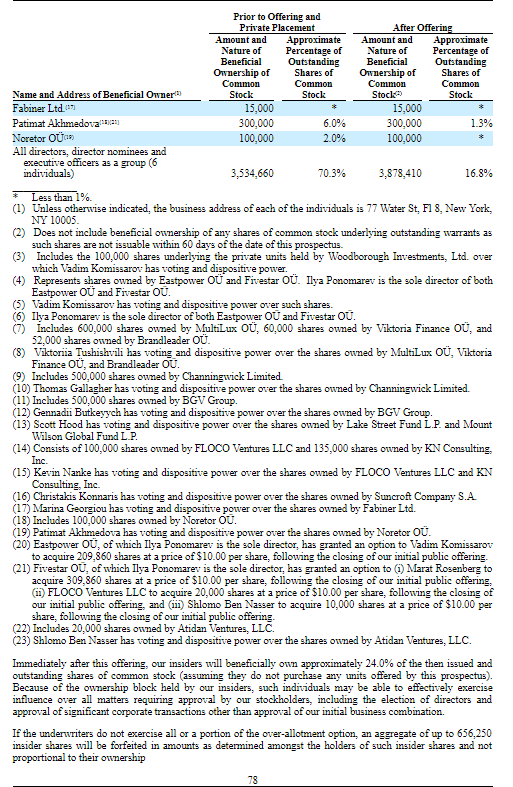 В частности, опубликованы 30 компаний и частных лиц, а также информация об происхождении акций. Ключевым акционером компании является бывший депутат Государственной Думы России Илья Пономарев. Кроме него, в составе акционеров целая плеяда выходцев из России и стран СНГ: Вадим Комиссаров, Дмитрий Некрасов, Марат Розенберг, Тимур Аслания (дядя Михаила Саакашвили), Виктория Тушишвили и ее муж Эдуард Хидиров (депутат из Дагестана имевший проблемы с законом за банковские махинации), Патима Ахмедова и многие другие. Председатель совета Trident Acquisitions американец Эдвард Верона тесно связан с Россией, в частности в 2008-2013 гг. был президентом US-Russia Business Council.