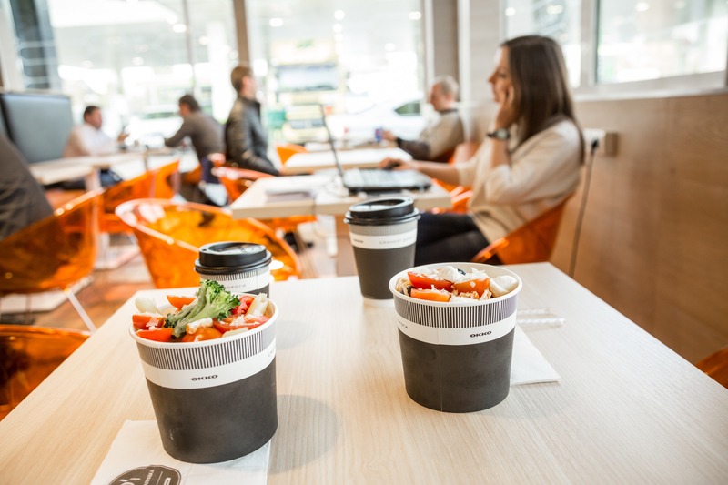 Заказ готовится быстро, в течение 2,5-3 минут. Готовое блюдо подается в брендированных стаканах-тарелках со столовыми приборами, чтобы его одинаково удобно было взять с собой в дорогу или съесть непосредственно в кафе.