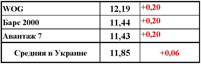 Кроме того, стоимость LPG на отдельно стоящих АГЗП в г. Киев выросла на 20 коп./л до 11,43-11,44 грн/л. Например, в сетях «Авантаж 7» и «Барс 2000», СТС, «Нафтогаз-2» и др.