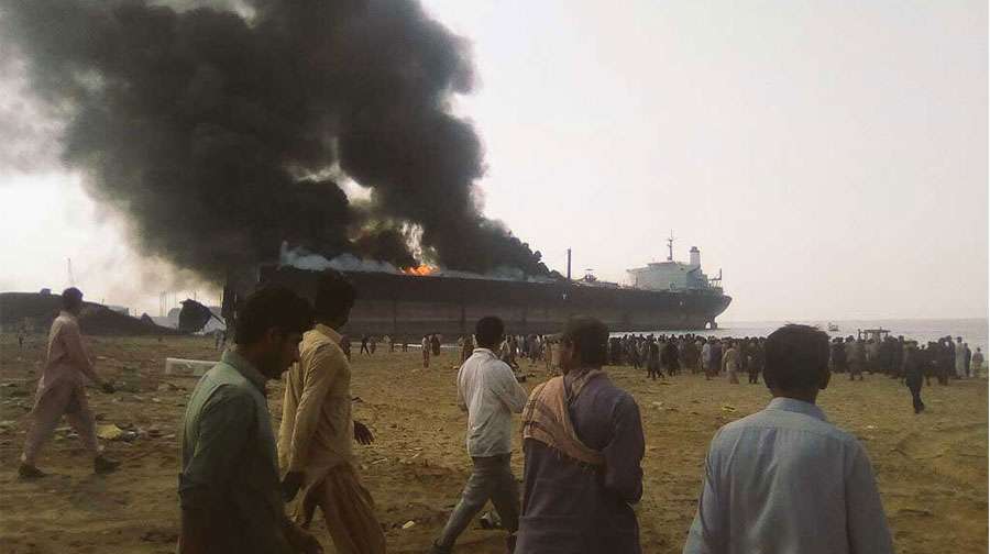 Двенадцать человек погибли и более 50 получили ранения во вторник, по причине взрыва на нефтяном танкере, который стоял на судоразделочном заводе в Гадани, Пакистан.