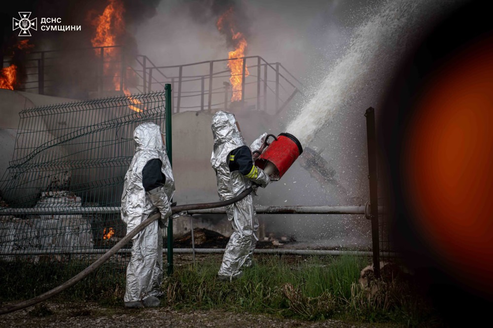 В Сумській області після удару російських військ вогонь охопив ємності з дизельним пальним на одному з інфраструктурних об’єктів. Про це повідомляє Головне управління ДСНС України у Сумській області на своїй сторінці в мережі Facebook.