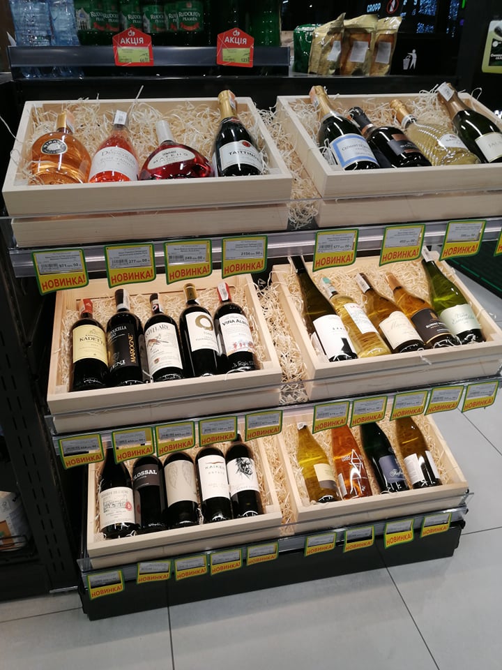 Цены варьируются от 200 до 2000 грн за бутылку. Винные полки появились в начале 2022 года.
