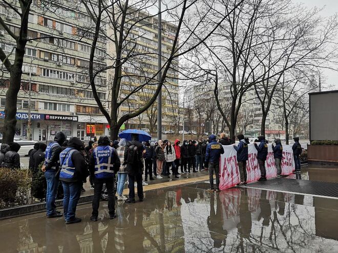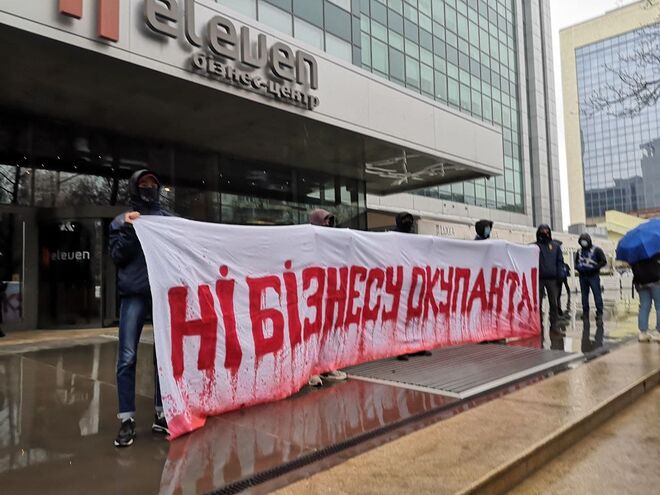 Как передает корреспондент UBR, около 20 представителей Национального корпуса собрались возле главного офиса компании в БЦ Eleven по ул. Соломенской, 11. Около центрального входа активисты развернули транспарант с надписью «Нет бизнесу оккупанта».