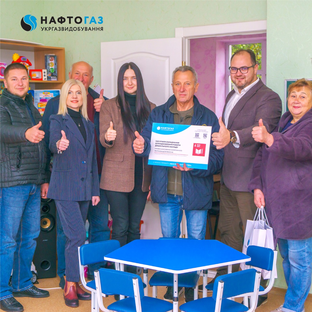 «Завдяки партнерству з Укргазвидобування відтепер садочок має зручні меблі, розвивальні іграшки та сучасну комп’ютерну техніку: мультимедійний комплекс, акустичну систему, ноутбук і кольоровий принтер. Також у межах співпраці було придбано нове кухонне обладнання та посуд для харчоблоку, побутову техніку та робочий інвентар», – йдеться у дописі компанії.