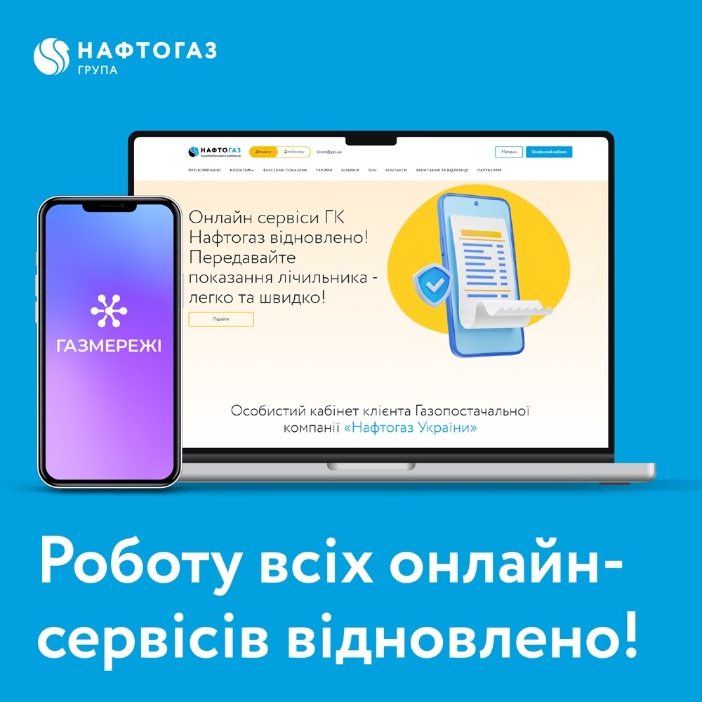 «Роботу всіх онлайн-сервісів Газопостачальна компанія «Нафтогаз України» та «Газмережі» відновлено», — йдеться у повідомленні.