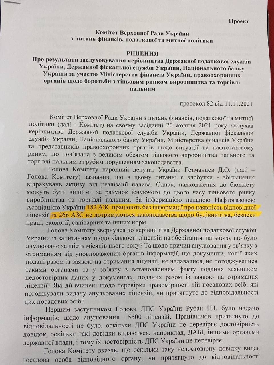 - 182 АЗС, которые работают без информации про наличие лицензии розничной реализации топлива.