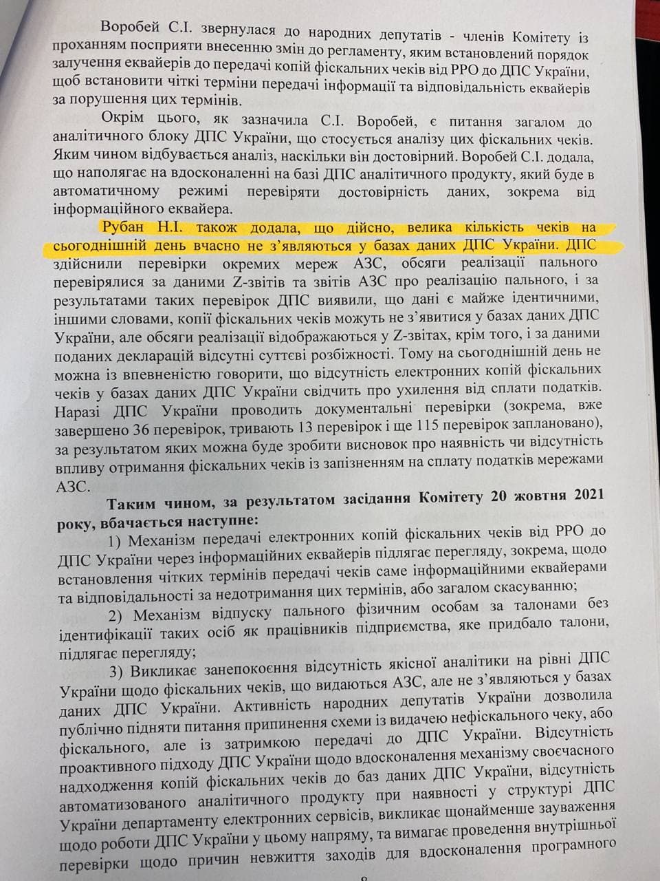 Об этом говорится в протоколе №82 от 11.11.2021 г. решения Комитета Верховной Рады Украины по вопросам финансов, налоговой и таможенной политики, которое состоялось 20 октября 2021 г. В частности, об этом сообщила заместитель главы ГНС Украины Наталья Рубан.