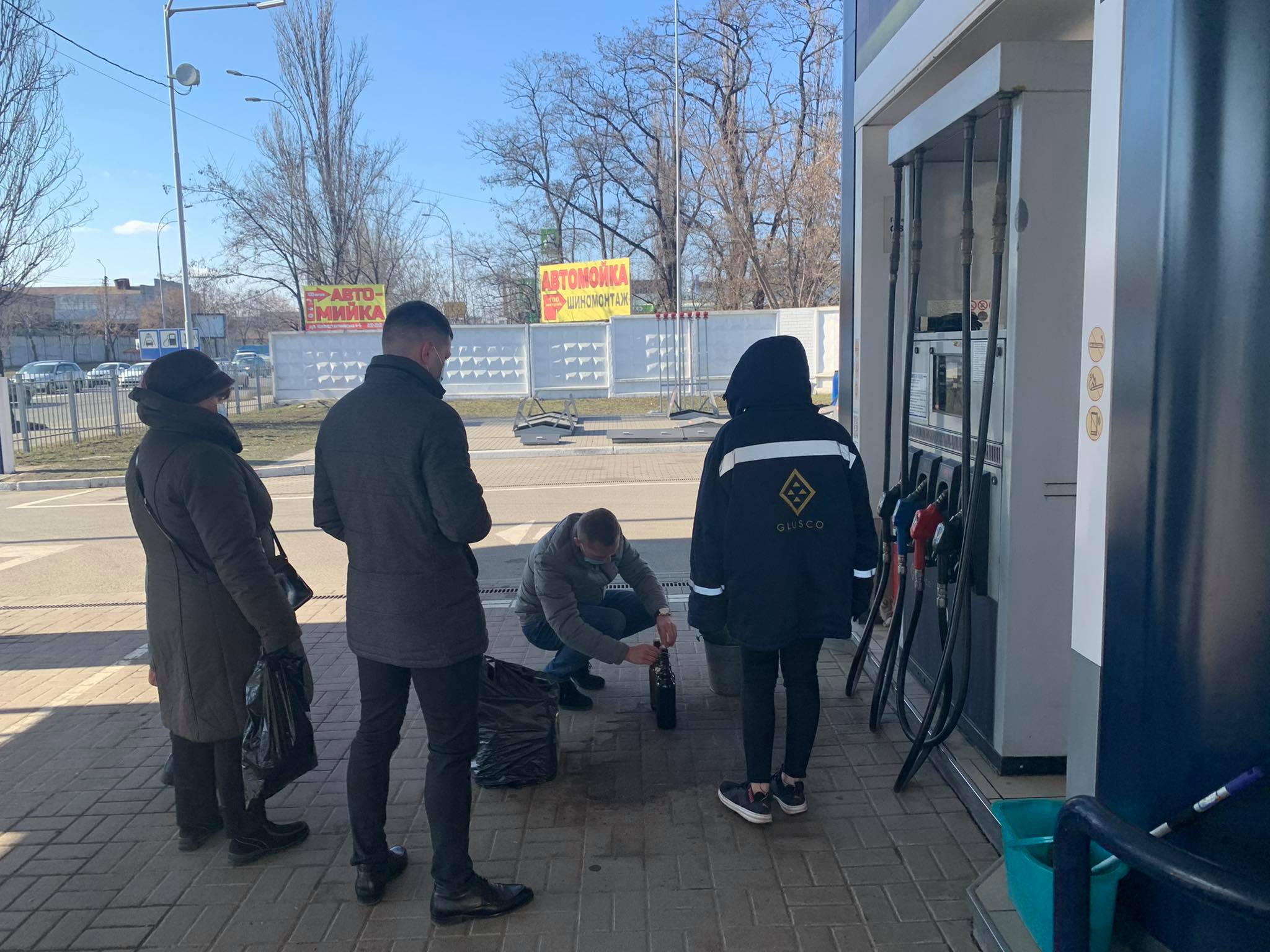 Представители служб проводят отбор проб и видеофиксацию оперативно следственных действий. Сотрудники АЗС напуганы.