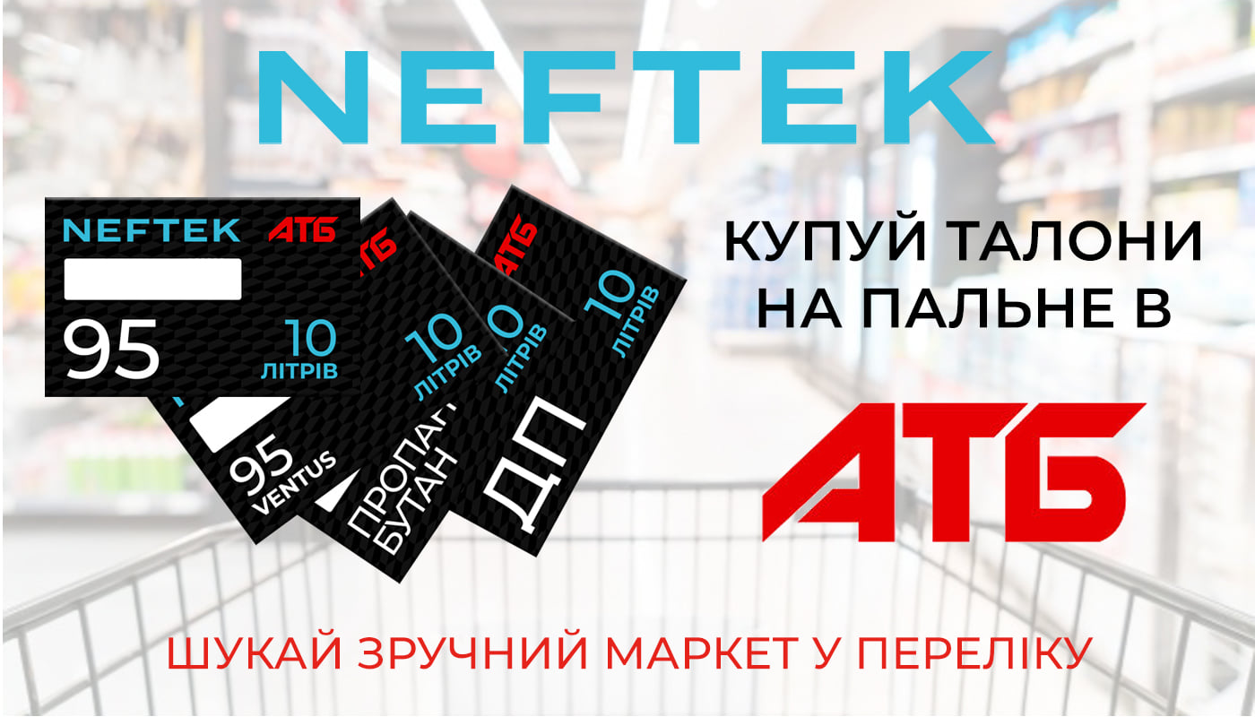 Cеть АЗС NEFTEK начала реализацию талонов на все виды топлива в сети маркетов АТБ в Днепре и области. Об этом сообщили в компании.
