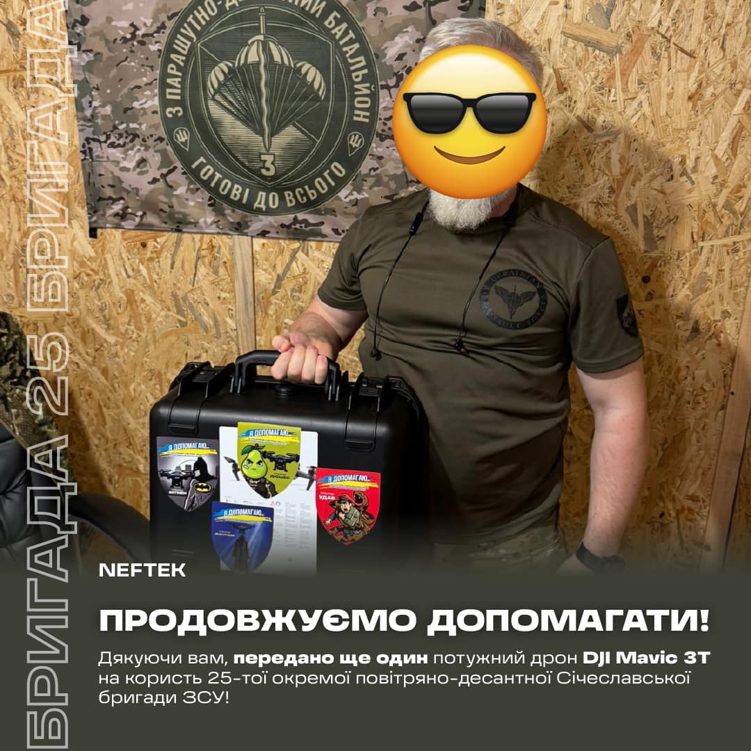 Допомога надана у рамках проєкту «Я допомагаю», який Neftek запустила у березні 2023 року, розпочавши збір коштів на пальне для 25-тої Січеславської бригади. Клієнти можуть підтримати Січеславську бригаду, придбавши в мережі АЗК Neftek наліпки «Я допомагаю». Тоді повідомлялося, що наліпка коштує як один літр бензину, а усі кошти від продажів переводяться в літри пального та доставляються на передову. А у травні 2023-го компанія оголосила, що починає збирати гроші на дрони для Січеславської бригади.